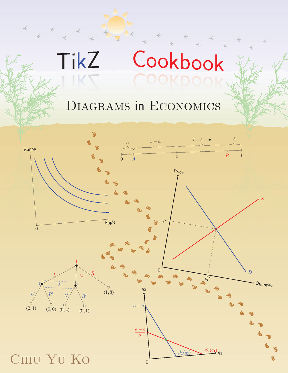 This book is "TikZ Cookbook for Diagram in Economics: step-by-step illustration". It illustrates how to draw common economic diagrams using TikZ.